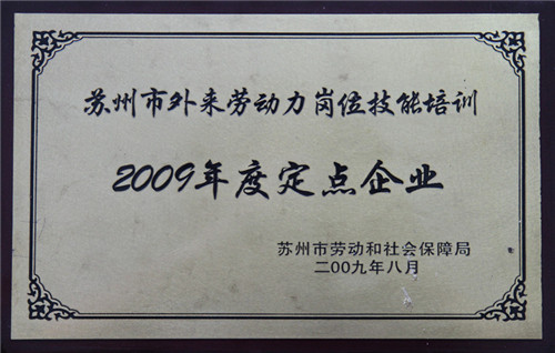 2009年度外来劳动力岗位技能培训定点企业